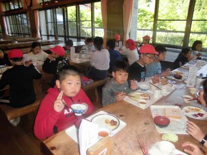 朝食もしっかりと食べ、この後、午前の活動「ゴシ谷ハイク」に出かけます。