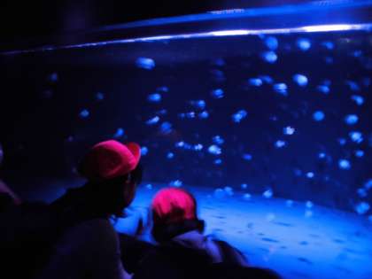 お弁当を食べながら「イルカの遊びの時間」を見たり、ふわふわクラゲの真似をしたり、楽しい遠足となりました。