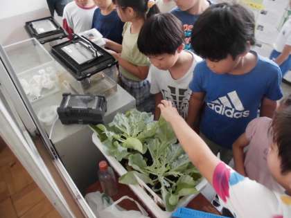今日のモンシロチョウとアゲハチョウの幼虫です。少しずつ大きくなっています。