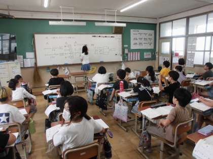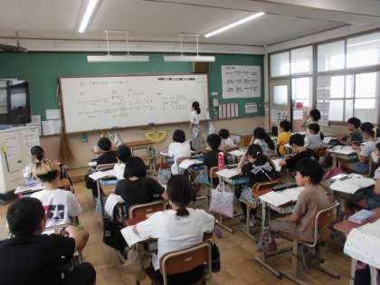 整数や小数に小数をかける計算の仕方を学習してきました。練習問題に取り組んだ後、考え方を説明しながら答え合わせをしました。
