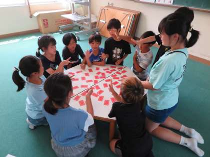 今日は、ロング昼休みで、全校たて割り遊びが行われました。縦割り班がそれぞれ校舎内、運動場に分かれて遊びを行いました。どのグループも自分たちの計画した遊びを楽しんでいる姿がみられました。次回も楽しみですね。