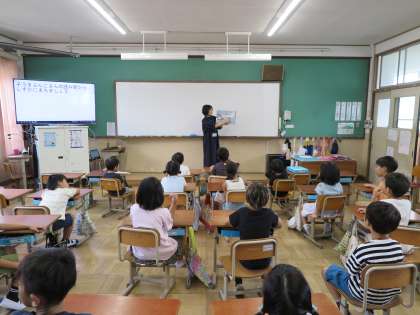 2年生の教室でも読み聞かせがありました。「やったー子うま文庫さんや」「みんな早く座りや」などお話を楽しみしている子ども達がみんなに声をかけていました。今日のお話は、「うごいちゃだめ」でした。お話を知っている子も多い様子でしたが、楽しく聞くことができていました。