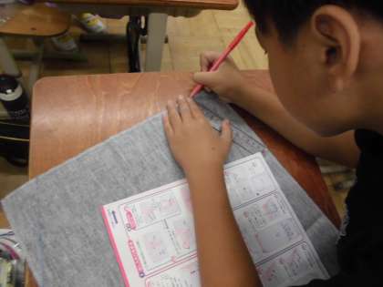 思いを形にして生活を豊かにするために、針と糸で縫ってナップサックを作ります。布地にチャコペンで印を書きました。この後、仕付け糸で縫い留め、ミシンで仕上げていきます。