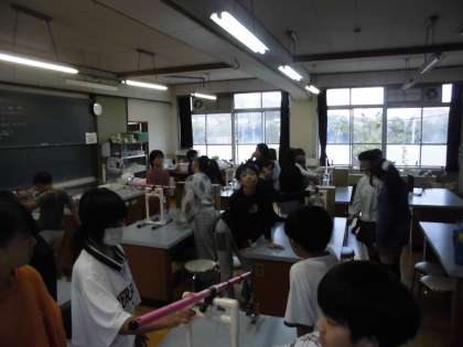 てこのはたらきについて学習していきます。今日は、棒を使ったてこのセットを使って水の入ったペットボトルを持ち上げてみました。力を入れるところを力点、支えるところを支点、ペットボトルを下げたところを作用点と呼ぶことを学習しました。