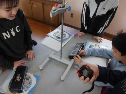 ふりこが1往復する条件を調べたので、今日は、1秒ふりこ(1秒で1往復するふりこ)を作りました。最後に、大型の振り子を使って、振り子の決まりを確かめたり、メトロノームの仕組みにふりこが利用されていることを確かめました。