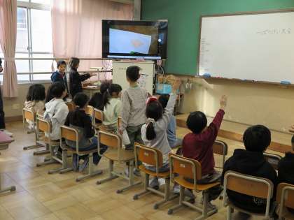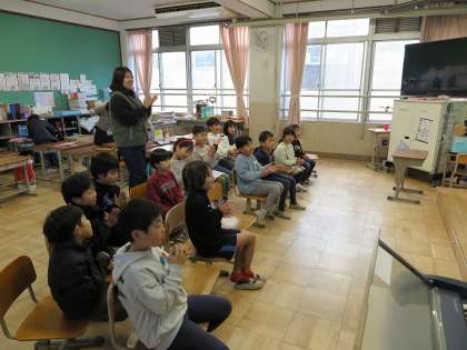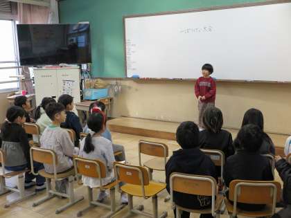 2年生は、2時間目にお楽しみ会を行っていました。英語の発表、演奏、クイズ、一発ギャグ等々を、それぞれが考えた内容をグループや個人で堂々と発表することができていました。
