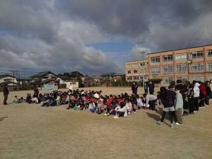 本日、地震を想定した避難訓練を実施しました。前回の訓練と同じように実施時刻を知らせずに行いました。いざというときにどうすればよいか自分で考えて行動する訓練でした。中間休みに放送が始まると運動場であそんでいる児童はすぐに真ん中に集まり、身をかがめていました。また、廊下や階段にいる児童もさっと身をかがめ、端に避難していました。前回の経験が生きている様子がうかがえました。