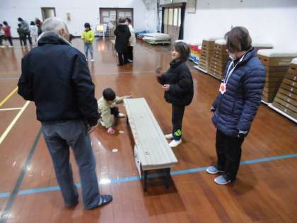 地域の方々19名が集まっていただき、1・2年と昔遊び体験をしていただきました。