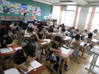 えんぴつで竹取物語の一部を視写しました。一文字一文字間違えないように気をつけて書いていました。