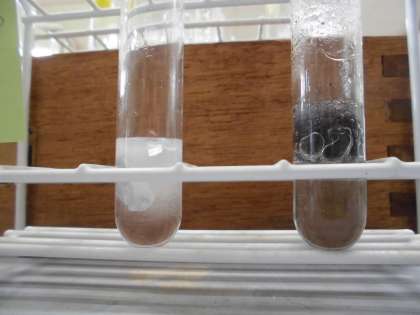金属にうすい塩酸をかけるとどうなるか調べました。アルミニウム箔は少しずつ、スチールウールは塩酸をかけたすぐから泡が出てきて、どちらも溶けることがわかりました。