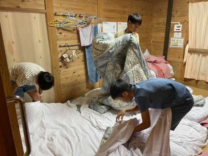 おはようございます。雨のためか肌寒い朝を迎えています。子供達は6時に起床し活動準備を頑張っています。