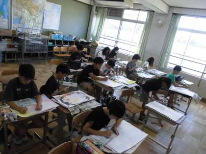 3冊の本ごとに分かれてお話から感じた場面の絵をかいています。それぞれ下書きが終わった人から、絵の具で色を塗り始めています。
