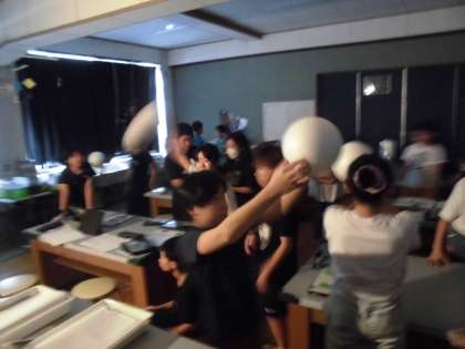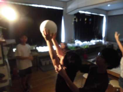 月の形が変わって見えるのは、太陽の光の当たり方と関係があるのかということを、ライトと白いボールで調べました。