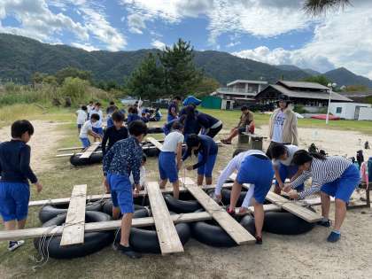 みんなで協力しながら少しずつイカダの形になってきました。