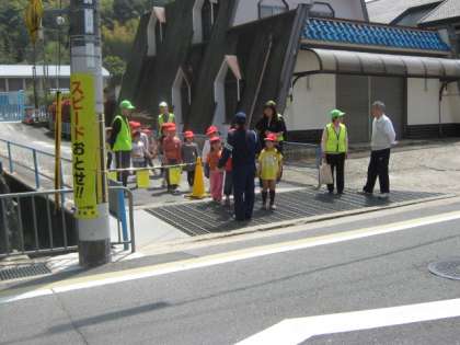 教室で,交通安全のために気をつけることなどのお話を聞いた後,道路の正しい歩き方や,横断の仕方などを校外に出て実習しました。