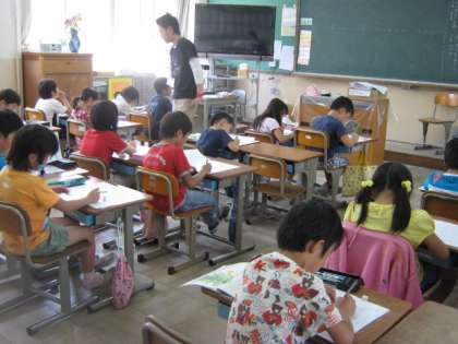 机の上がきちんと整理され,真剣に学習に向かっています。質問したいときは,静かに手を挙げて先生に尋ねています。学習態度が素晴らしかったので,たくさんたくさん褒めました。