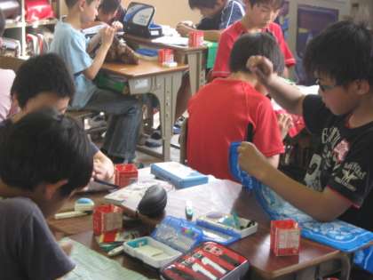 4時間目は,長期宿泊学習でお世話になる久多地域の皆さんにお贈りするプレゼントの共同製作です。宿泊グループごとに,手造り風鈴を作っています。デザインを考え,お礼の気持ちを込めて丁寧に作っていました。