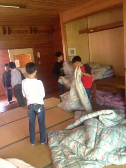 宿泊等の清掃に手分けして取り組んでいます。