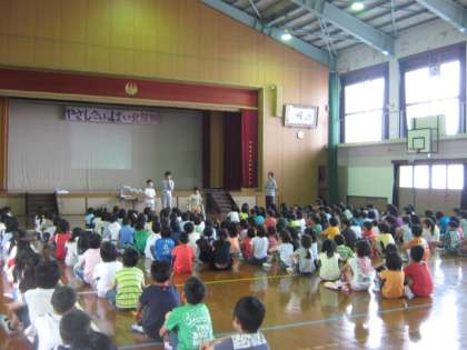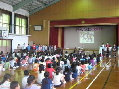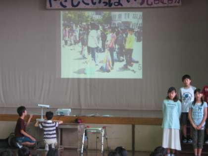 また,あすなろ学級のお友達と仲良くしましょうと,担任が二人のお友達の日ごろの学習の様子や熱心に取り組んでいる姿を,全校のみんなに紹介しました。