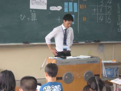 3枚目の写真は4時間目,算数をしている2年生の様子です。