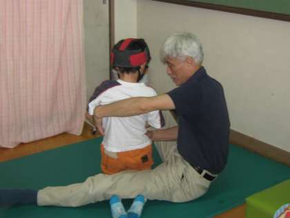 「体のどの位置をどのように支えるか」,「どの部分を意識して練習するか」・「どの程度の運動が適切であるか」など,今後の日々の支援活動にとてもを役立つことを,専門的な視点で教えてくださいました。