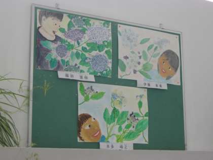 それぞれのテーマは,5年生が「紫陽花とわたし」,そして,6年生は,写生に出かけて描いてきた「醍醐寺の五重塔」です。