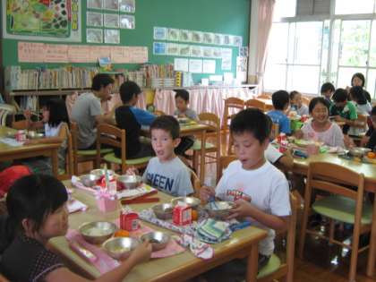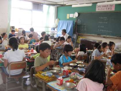 大きい学年も小さい学年も穏やかなやさしい表情で和やかに給食をいただいています。