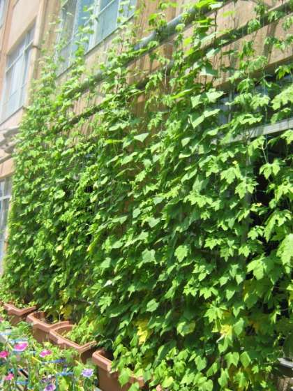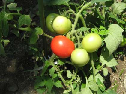 しかし,畑のトマトは鮮やかに色づき,緑のカーテンも1階を制覇し2階へとグングンその緑の葉を広げています。