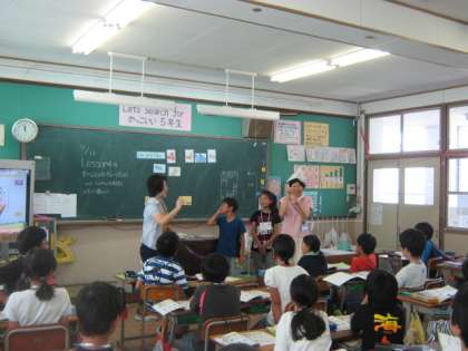 5年生の教室では,スクールサポーターの先生と担任とで英語の学習をしていました。いつも熱心な教材研究の下で充実した授業が成されています。子どもたちはみんな笑顔いっぱいで英語の環境に親しんでいます。