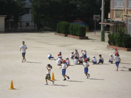 2年生は,運動場でかけっこの練習をしていました。久しぶりにカラリと晴れ渡った空の下で,お友達が走っているのを,「がんばれー!」と応援しています。やっぱり,お日様の下で,子どもたちの笑顔がキラキラ輝いています。