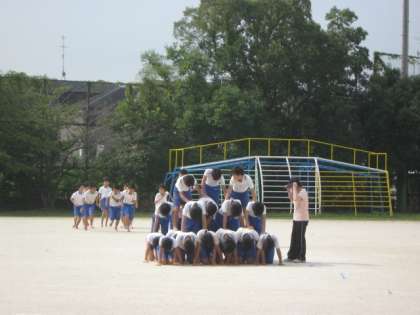 組体操の練習風景