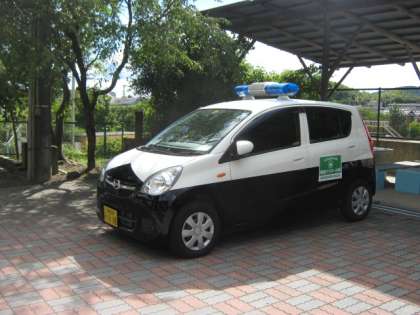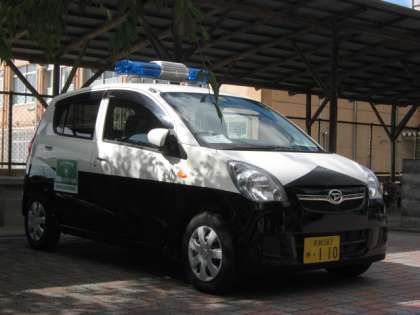 醍醐地域の皆様が,醍醐地域の安全の見守るために,輪番で乗車される「白黒パトカー」です。