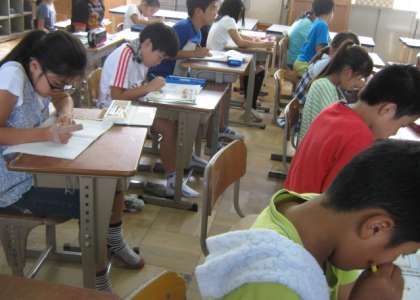 4年生は少人数学習で,教室と学習室に分かれて学習していました。今日は,計算問題の練習をしていました。みんな集中して課題に向かっています。教員が個別に手厚く関われる体制であり,習熟を図るのに有効な指導形態です。
