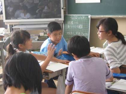 少数の武士が,どうして多数の人民を支配することができたのかという学習問題について,資料を中心に考えています。「武士のとった政策のねらいは何なのか」ということについて,グループ内で,意見交流をしていました。さすが6年生です。難易度の高い問いに対して,自分なりの考えをしっかり伝えている姿に感心しました。