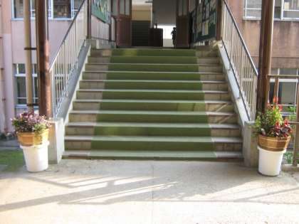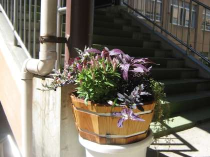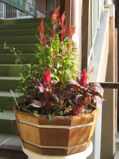 写真は,渡り廊下に置かれている『秋の寄せ植え』です。