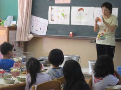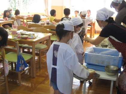 給食当番の人も,ずいぶん手際よく配膳できるようになってきました。