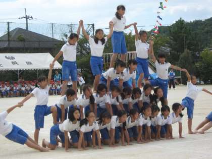 友達の重さに耐え,そして支えてくれている友達を信じ,見事に技が決まっていきました。
