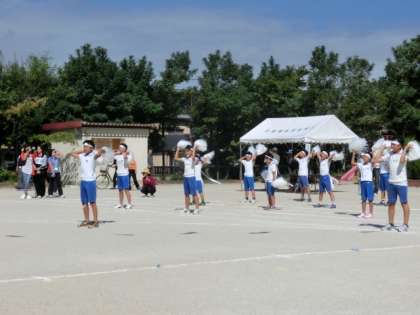 また,今年は,プログラムの始めにエール交換を,そして途中に応援合戦をと,2回に分けて応援団の活躍の場を設定しましたが,どちらもしっかり声が出ており,動きもそろっていて,応援団と各色の子どもたちの心が一つになった活力ある応援ができていました。