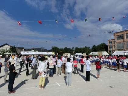 朝一番の開会式から,合同で行われ,小学生,地域住民の皆様が場を時間を活動を共有する活力あふれる楽しい催しとして,地域に根付いた運動会です。