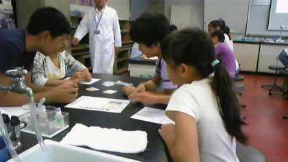 「ためして、せっけん」 というテーマで,科学センターの先生の授業を受けています。