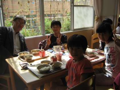 今日は9月・10月生まれの子どもたちと教職員がランチルームに集まって,一緒に給食を食べました。