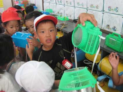 みんな口々に,捕まえてきた虫のお話をしてくれたり,虫かごをかかげて見せてくれたり,とても満足そうな様子でした。