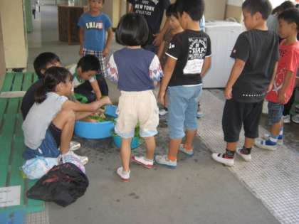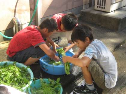 また収穫の後,プランターの周りにこぼれた土や切れた葉などをきちんと役割分担をして掃除しているのも感心ですね。