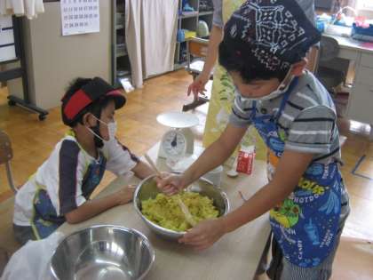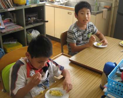 そこで今日は,3・4時間目に,『スイートポテト』作りをしました。