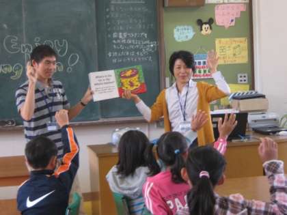 まず,英語指導のスクールサポータの先生が来てくださる木曜日を,「Enjoy English」の日として,中間休みに図書室で英語の絵本の読み聞かせや,歌遊びをすることにしました。