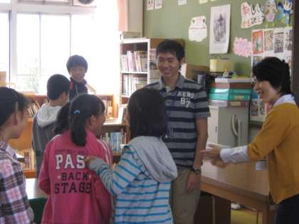 給食時間に英語の歌を放送で流したり,図書室に英語の絵本コーナーを設けたり,日常的に,自然な形でシャワーのように英語に触れさせていきたいと思っています。