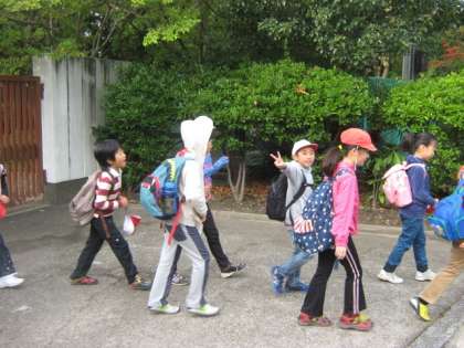 1・2年生とあすなろ学級は宝ケ池方面へ,そして3年生は大文字山へと元気に出発していきました。