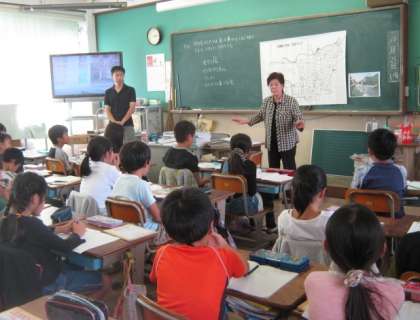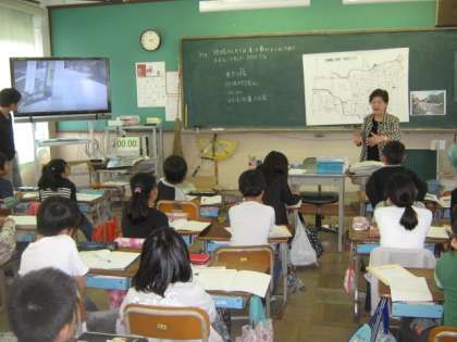 前時では,ガードレールや道路標識,カーブミラーなど,ハード面での防御の役割について調べましたが,今日は,地域の人々が果たしてくださっている役割に視点をあて,自分たちの安全を日々守ってくださっている見守り隊の隊長様のお話を聞く機会を設定しました。