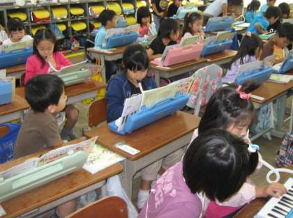 1年生は教室で音楽をしていました。