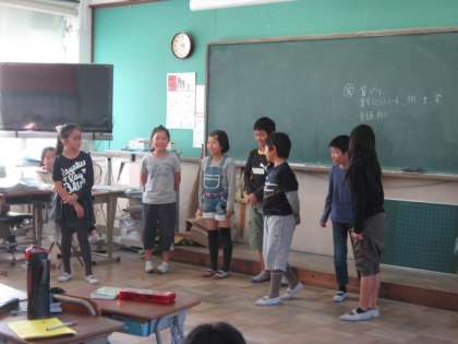 4年生は,教室とブックルームに分かれそれぞれに指導者がついて,『皿屋敷』の練習をしていました。この劇は,良く知られている怪談をコミカルにアレンジした新版皿屋敷です。その,展開の面白さを観客にうまく伝えられるといいですね。